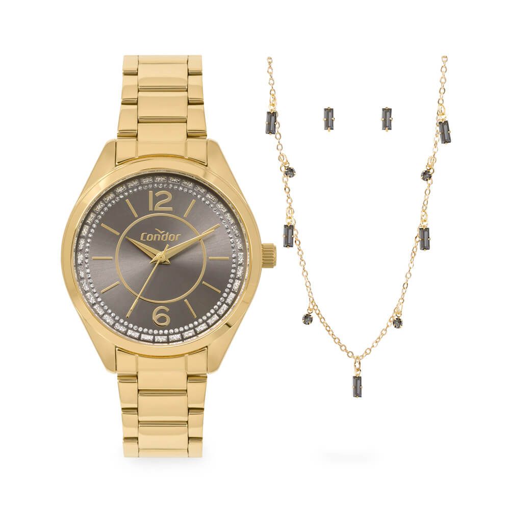 Kit Relógio Condor Feminino COPC21JFB/K4C colar e brincos