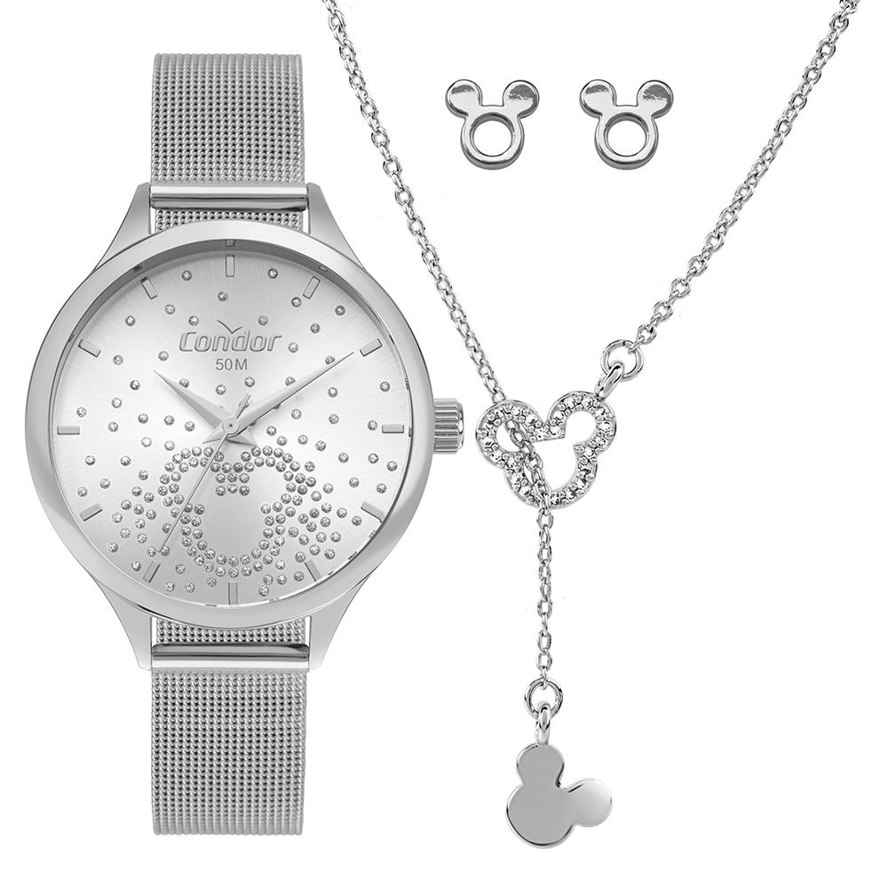 O Kit Condor Feminino Mimos e Sutilezas Prata - CO2036MZN/K4K une elegância, delicadeza e um toque lúdico inspirado no universo Disney. Um conjunto encantador para mulheres que apreciam acessórios modernos, com brilho sutil e acabamento sofisticado.