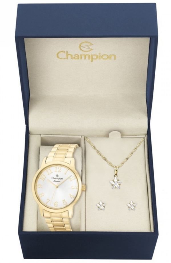 Kit Relógio Champion Elegance Feminino CN26171W com Colar e Brincos