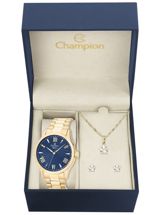 Kit Relógio Champion Elegance Feminino CN27796K com Colar e Brincos