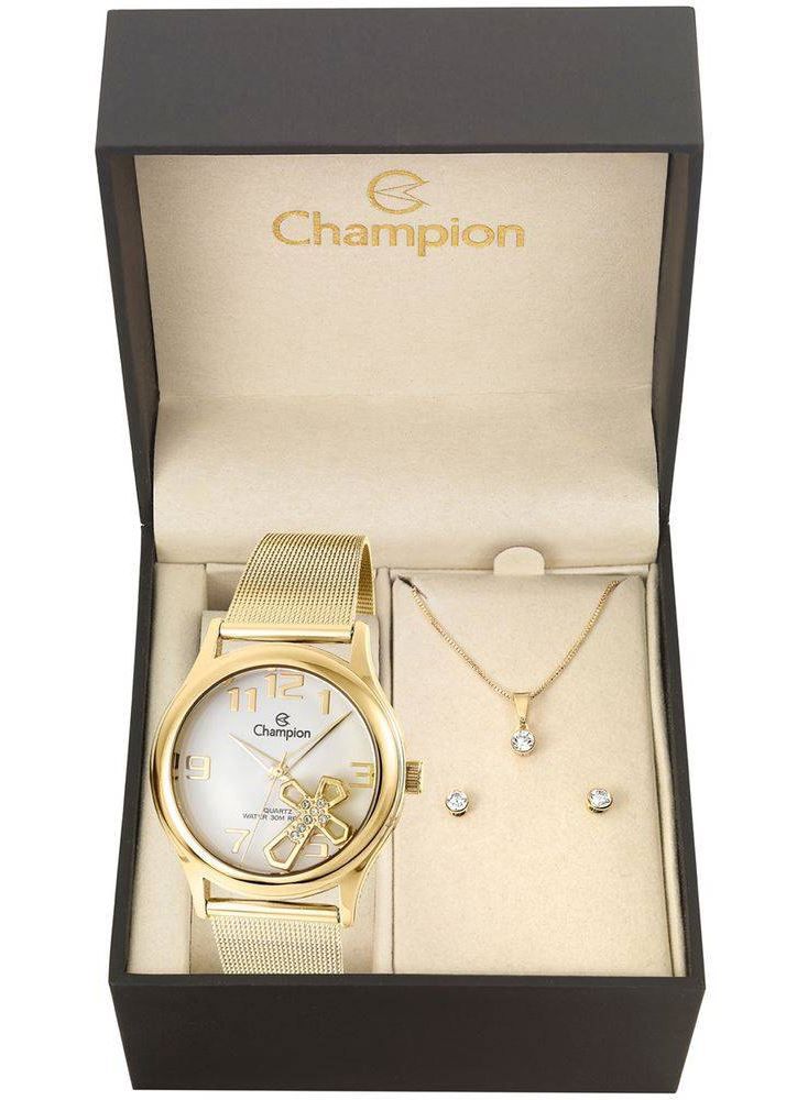 Kit Relógio Champion Elegance Feminino CN28491W com Colar e Brincos