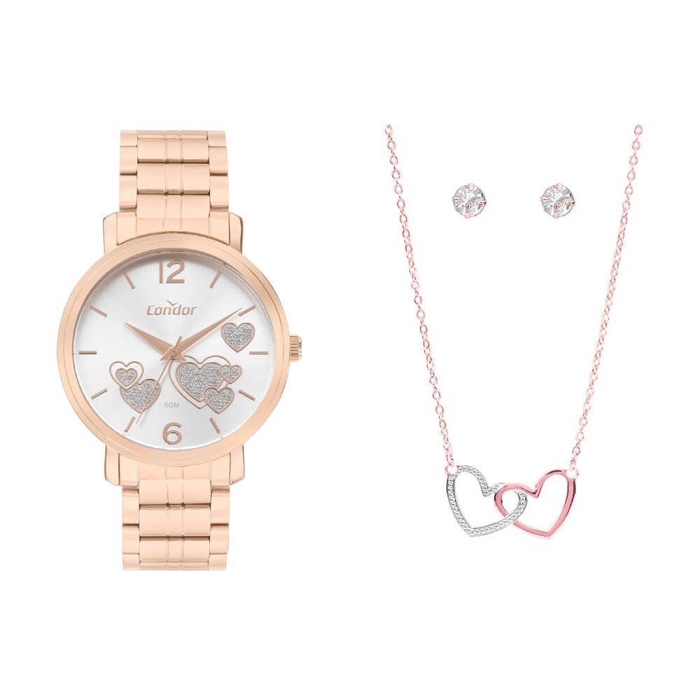 Kit Relógio Condor Feminino COPC21JEG/K4K + colar e brincos