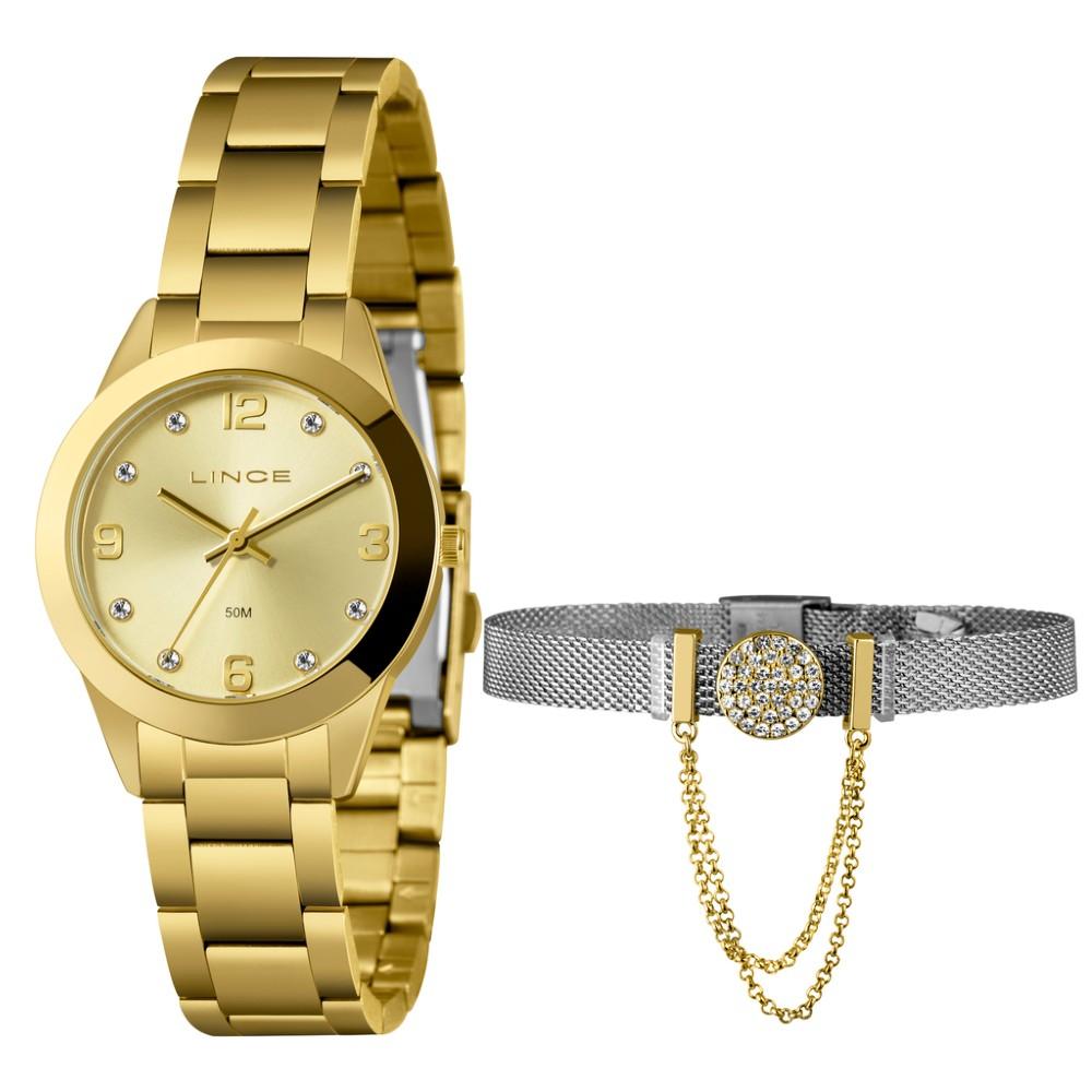 O Kit Feminino Lince LRG4785L34 K07FC2KX é a combinação perfeita entre sofisticação e versatilidade. O relógio possui caixa dourada de 34mm com mostrador champanhe, realçado por delicados cristais aplicados nos marcadores de hora, que conferem brilho discreto e elegante.