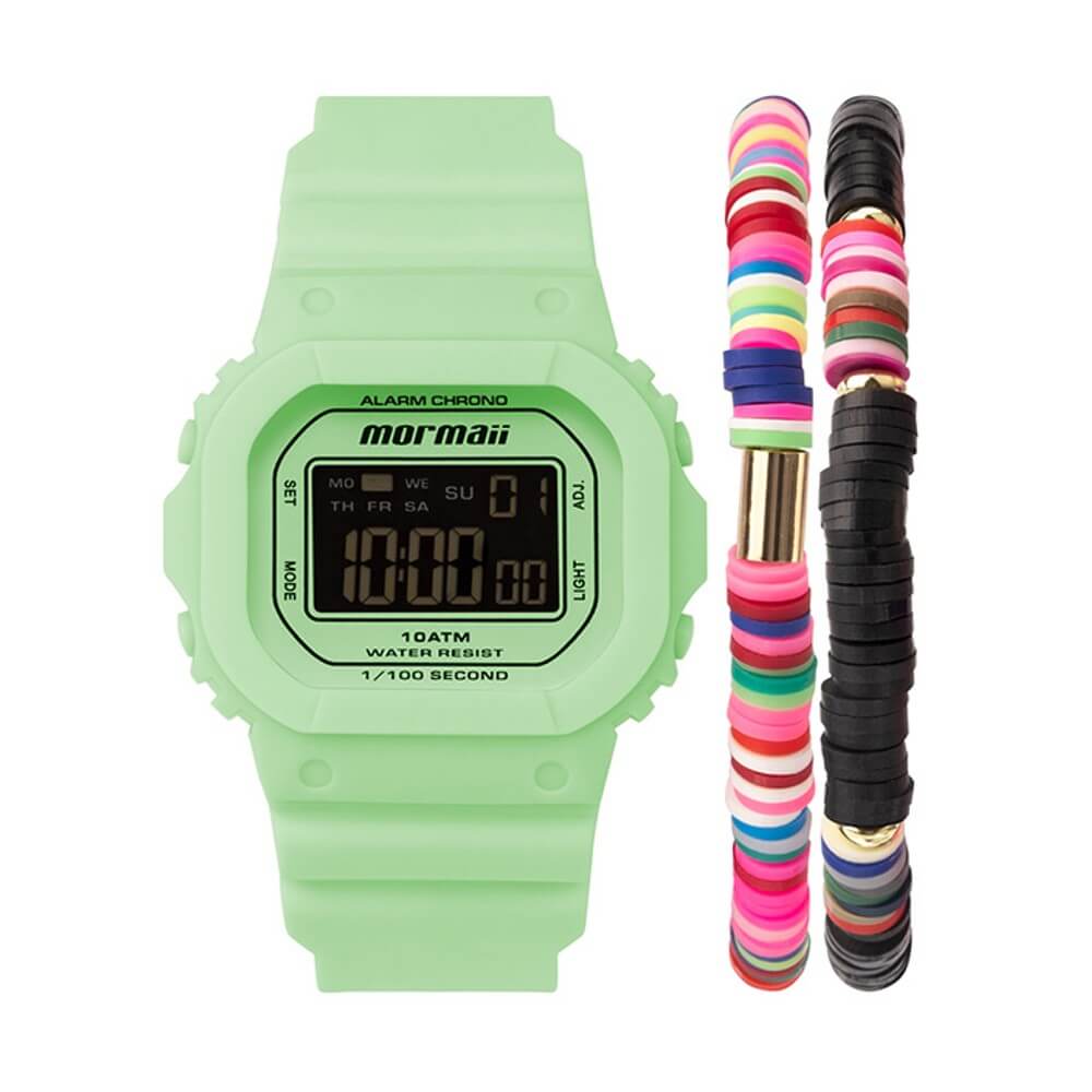 Esses modelos da linha Sports foram feitos para as mulheres que gostam de praticar esporte e ao mesmo tempo usar relógios no dia a dia! Para facilitar ainda mais seu desempenho e nunca perder o estilo, ele vem com uma caixa de 44mm, pulseira de polímero verde, LCD negativo e resistente a até 100m