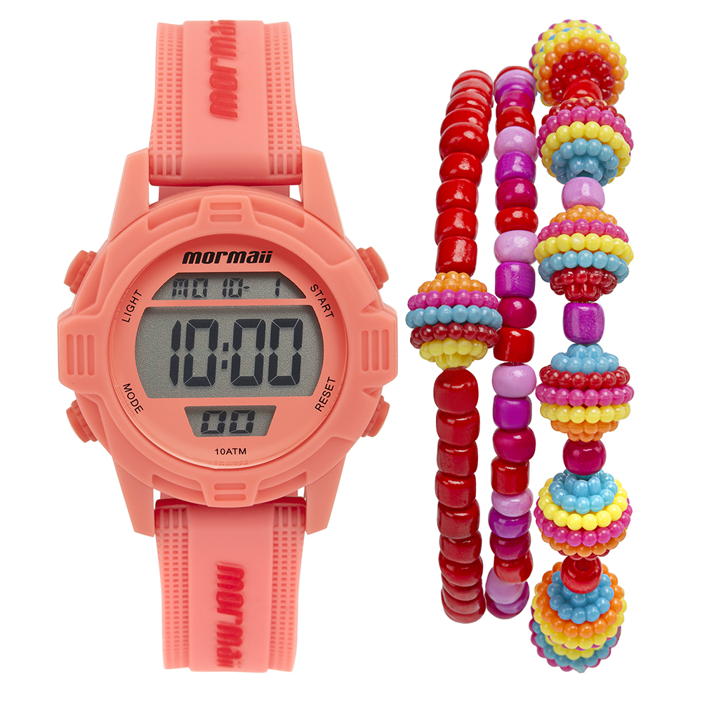 Esse relógio da linha Infantil traz um novo modelo, com caixa super diferenciada rosa e pulseira na mesma cor com a logo da marca em alto relevo. Ele vem com caixa de polímero de 37,5mm e pulseira de silicone, para o máximo conforto dos pequenos, e possui funções como calendário, cronógrafo, alarme e luz noturna. Seu maquinismo digital facilita a leitura das horas e com sua resistência à água de 100 metros, eles começam a abraçar o estilo de vida Mormaii desde pequenos