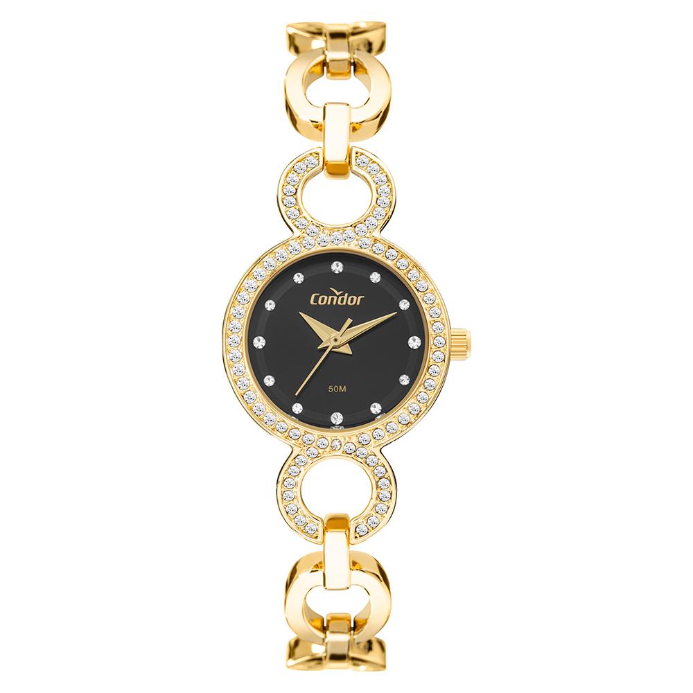 O Relógio Condor Feminino Bracelete Dourado - CO2035NVG/5P é uma joia em forma de relógio. Seu design sofisticado e elegante combina o brilho dos cristais com o acabamento dourado impecável, criando um visual marcante e luxuoso que se adapta tanto a ocasiões especiais quanto ao uso diário.