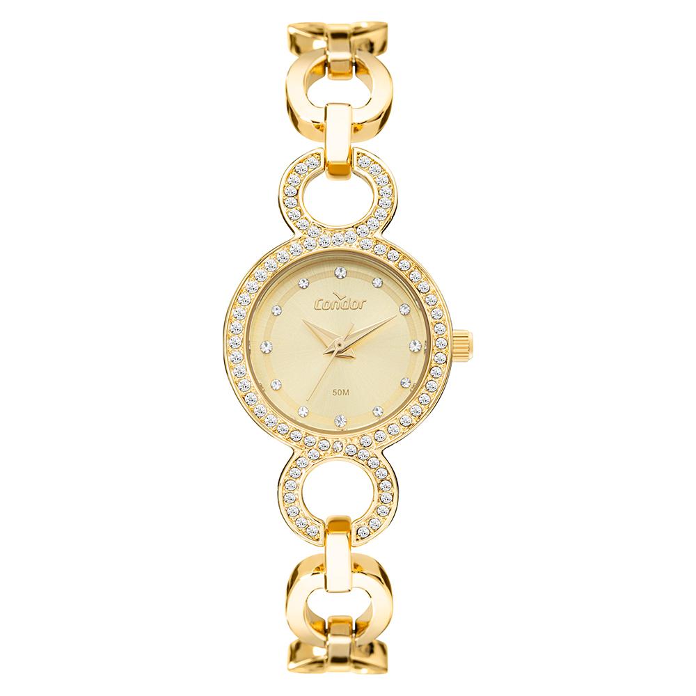O Relógio Condor Feminino Bracelete Dourado - CO2035NVG/5X é um modelo que traduz glamour e sofisticação em cada detalhe. Seu design refinado e cheio de brilho faz dele o acessório perfeito para quem busca elegância e estilo em um único relógio.