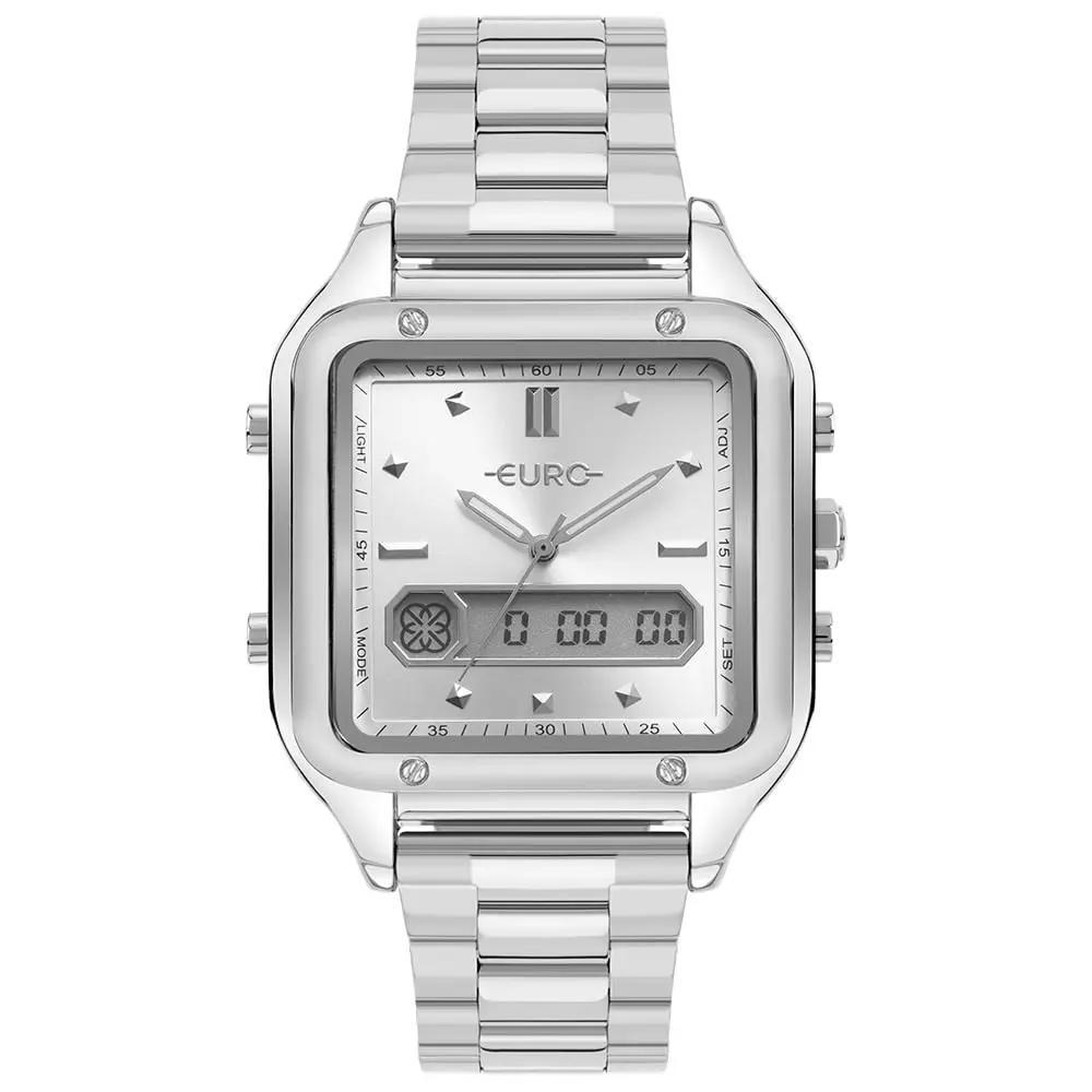 O Relógio Euro FF Sporty é a combinação ideal entre modernidade e estilo urbano. Com caixa retangular de 41mm em metal prateado e mostrador prateado com detalhes em alto-relevo, ele traz um visual impactante e sofisticado.