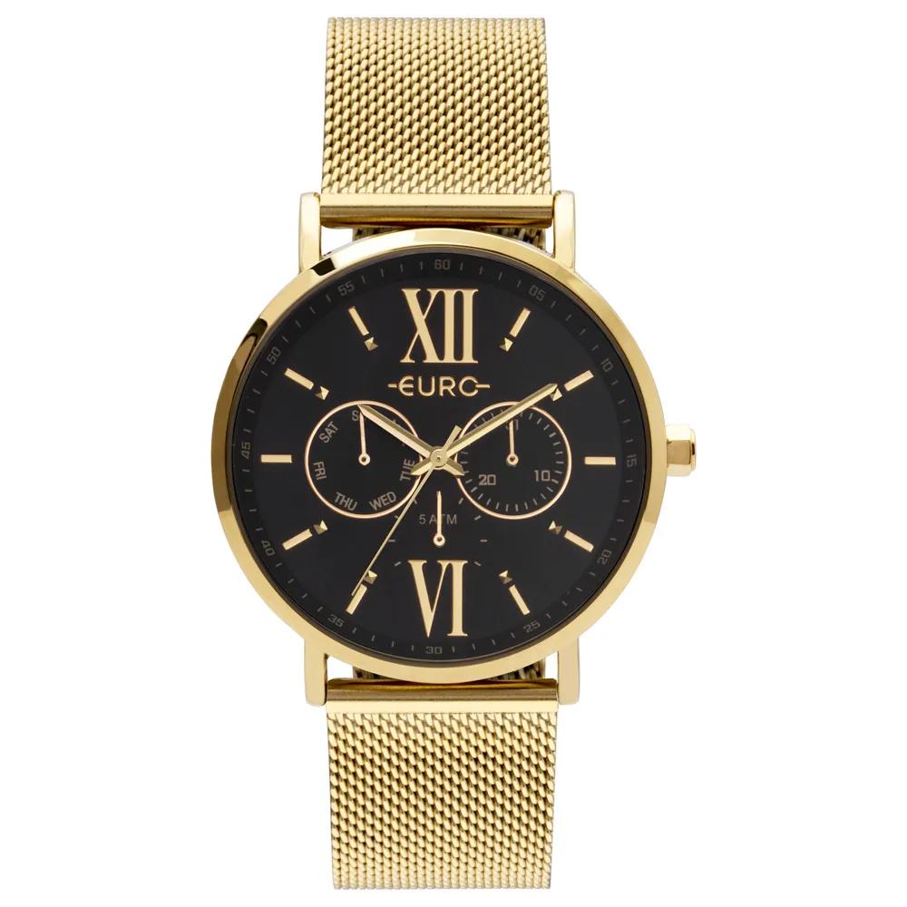 O Relógio Euro Feminino Multiglow Dourado - EU6P29AHCBPS/4P combina modernidade e sofisticação em um design elegante com pegada funcional. Com mostrador preto e marcadores dourados, é a escolha ideal para quem deseja estilo com destaque em todos os detalhes.