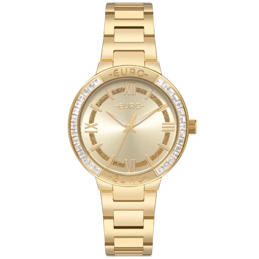 O Relógio Euro Feminino Stones Dourado é a escolha ideal para quem busca sofisticação, elegância e um visual marcante. Com design refinado e detalhes que remetem a acessórios modernos, este modelo se destaca pelo aro com aplicações decorativas, que adiciona brilho e personalidade ao conjunto.