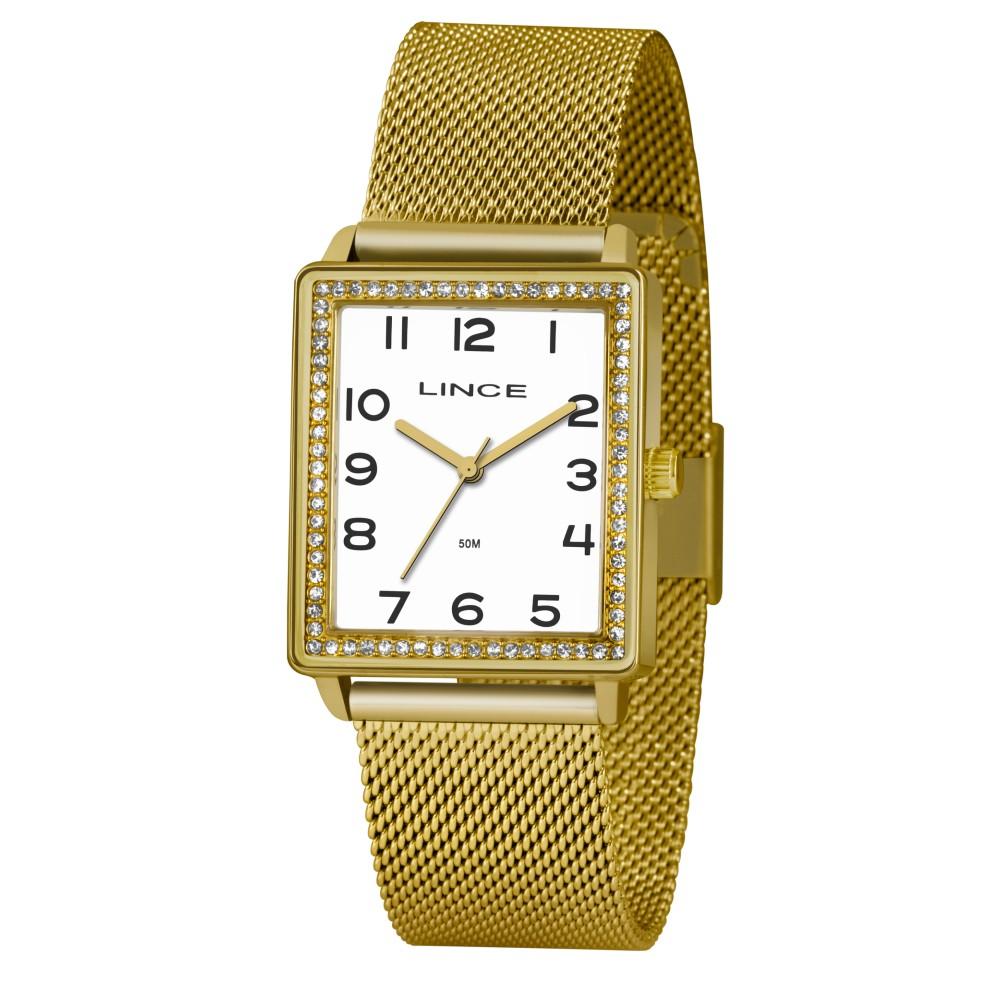 O Relógio Feminino Lince Analógico LQG4665L B2KX é a união perfeita entre sofisticação e estilo moderno. Sua caixa retangular dourada é emoldurada por cristais brilhantes, que adicionam um toque de elegância e glamour ao design. O mostrador branco com algarismos em preto garante leitura fácil e um visual clean, equilibrando charme e funcionalidade.