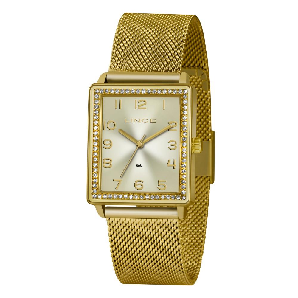 O Relógio Feminino Lince Analógico LQG4665L C2KX traduz elegância e sofisticação em cada detalhe. Sua caixa retangular dourada é adornada por cristais delicados que trazem brilho e charme ao modelo. O mostrador champanhe com algarismos dourados complementa o design refinado, oferecendo um visual moderno e luxuoso.