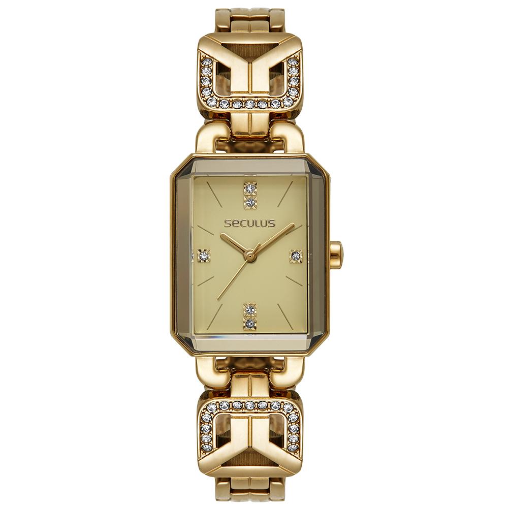 O Relógio Feminino Seculus 23736LPSVDB1 é a escolha ideal para mulheres que valorizam elegância, estilo e funcionalidade em um único acessório. Com design retangular moderno, acabamento dourado de alto brilho e mostrador delicadamente decorado com pedras, este modelo se destaca em qualquer ocasião, seja no ambiente profissional ou em eventos sociais.