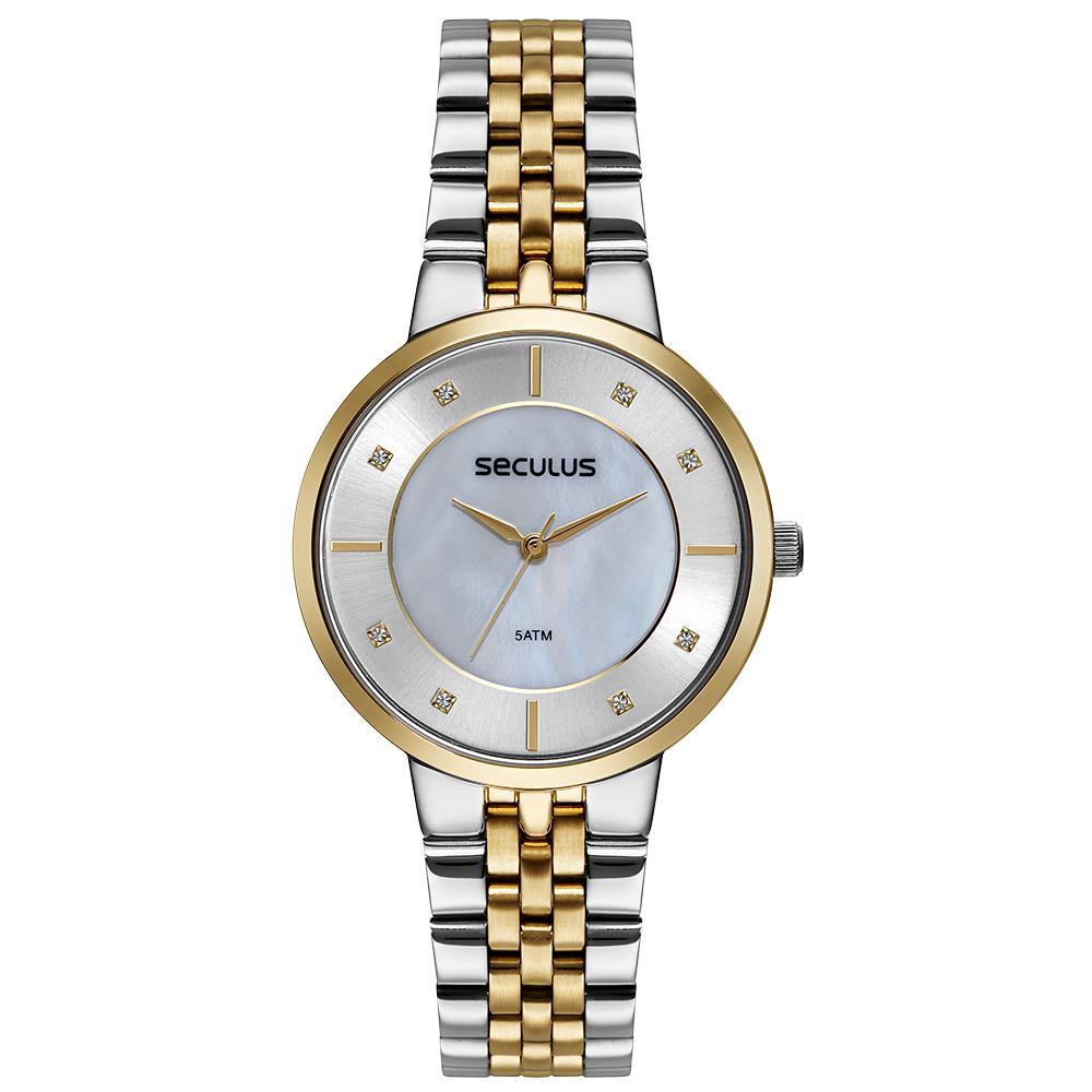 Relógio Feminino Seculus 77248LPSVBS3 – Sofisticação em Bicolor Dourado e Prata