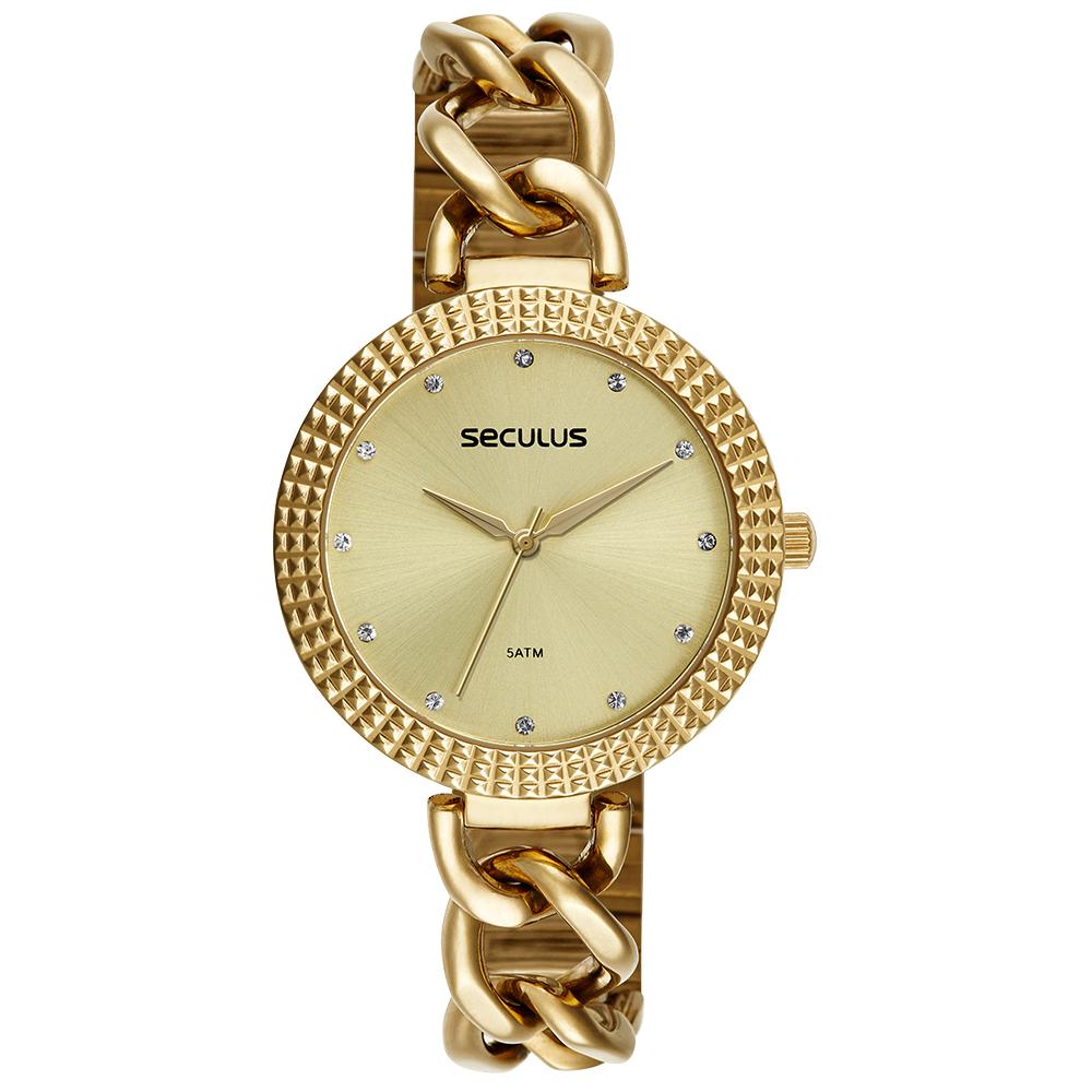 O relógio feminino Seculus 44257LPSVDB1 é a escolha ideal para mulheres que buscam sofisticação e versatilidade em um único acessório. Com um visual moderno e acabamento, ele se destaca pelo mostrador elegante em tom dourado suave, criando um contraste harmonioso e refinado.
