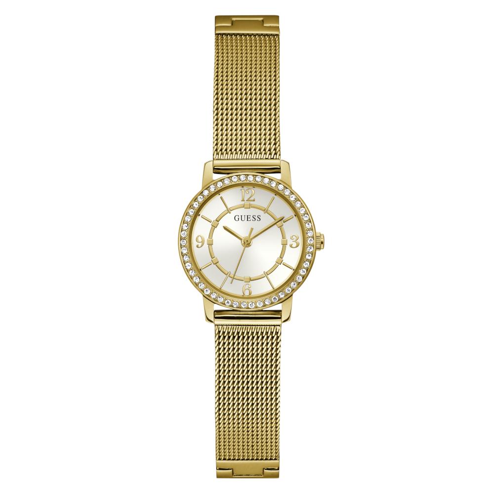 O Relógio Guess GW0534L2 é a escolha perfeita para mulheres que valorizam sofisticação, delicadeza e estilo em cada detalhe. Com um design refinado e acabamento dourado, este modelo traduz elegância atemporal, sendo ideal para compor looks modernos, clássicos ou até mesmo ocasiões especiais. O aro cravejado com cristais adiciona brilho na medida certa, destacando o pulso com charme e feminilidade.