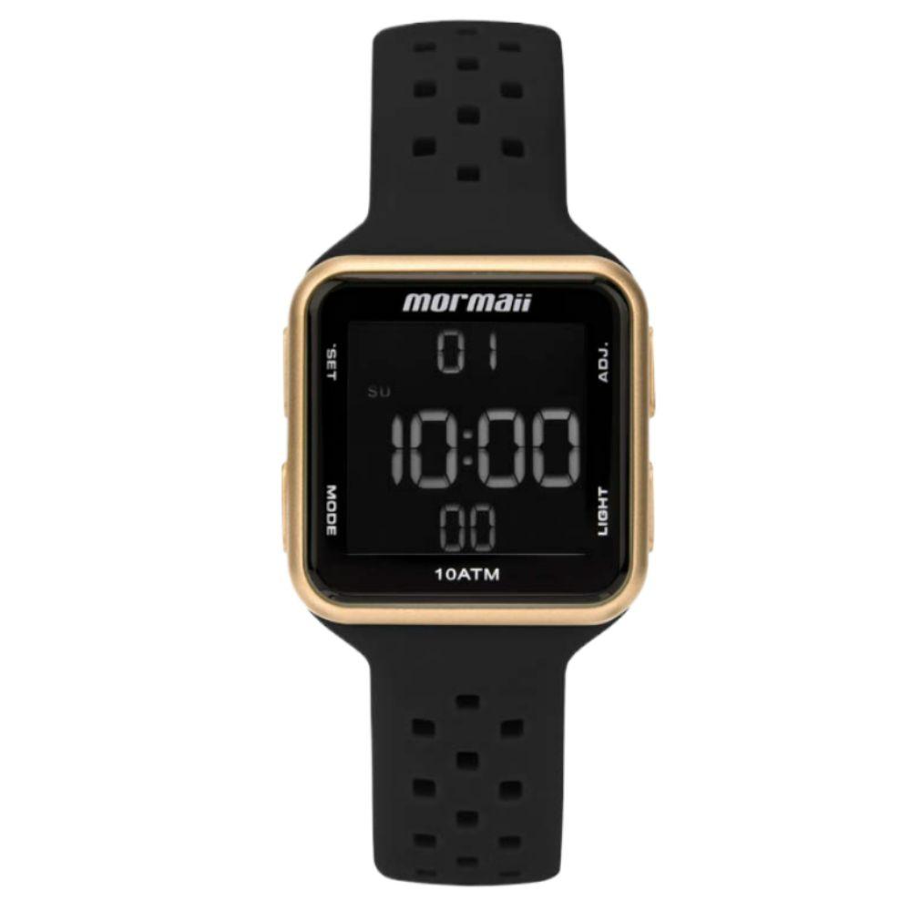 O Relógio Mormaii MO19800/8D traz um visual moderno e minimalista em uma combinação elegante de dourado com preto. Seu design quadrado com visor digital e caixa compacta de 32mm oferece uma proposta clean e sofisticada, ideal para quem busca um acessório prático e cheio de estilo para o dia a dia.