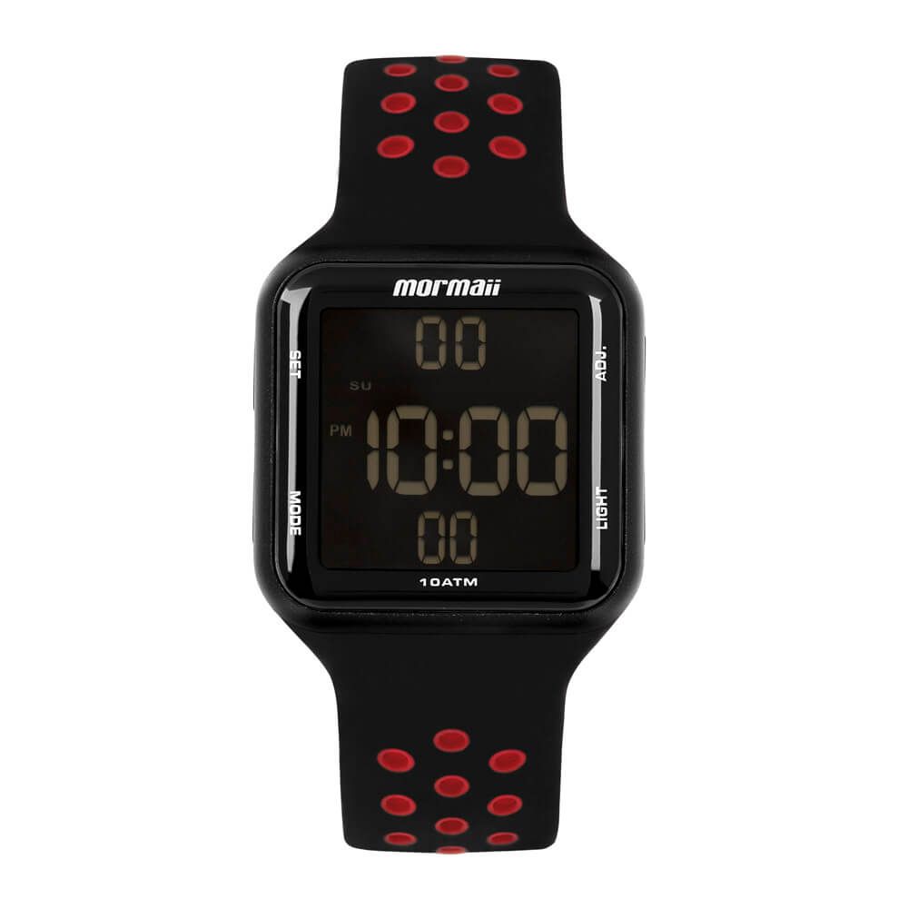 Esses modelos digitais com LCD negativo, resistência de 5ATM e caixa quadrada de 38mm, chegaram com tudo! Com banho preto e pulseira de silicone preta, esse relógio é perfeito para você sair e aproveitar as funcionalidades Mormaii!