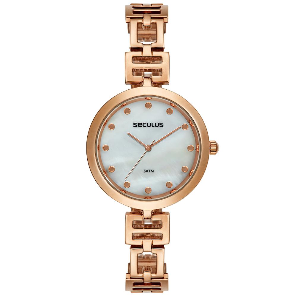 O Relógio Seculus 77296LPSVRB2 é a escolha ideal para mulheres que apreciam sofisticação em tamanho delicado. Com caixa em aço rosé de 29,5 mm, o modelo se destaca pelo design elegante e pelo mostrador em madrepérola branca, que transmite requinte e sutileza.