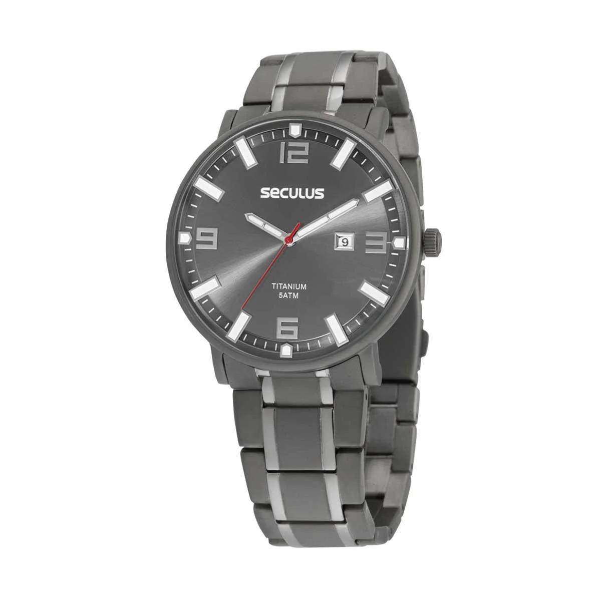 O Relógio Seculus 44114G0SVNT1 é a escolha perfeita para quem busca resistência, leveza e estilo sofisticado. Produzido em titânio, material conhecido por sua durabilidade e conforto no uso, este modelo se destaca pela robustez da caixa de 45 mm e pelo design moderno em tonalidade grafite.