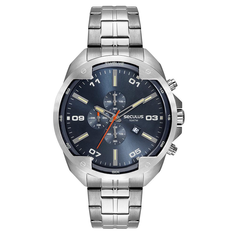 O Relógio Seculus 44244G0SVNA1 é robusto e sofisticado, ideal para homens que apreciam design moderno aliado à funcionalidade. Com caixa de aço prateado e mostrador azul profundo, o modelo transmite imponência e elegância em qualquer ocasião.