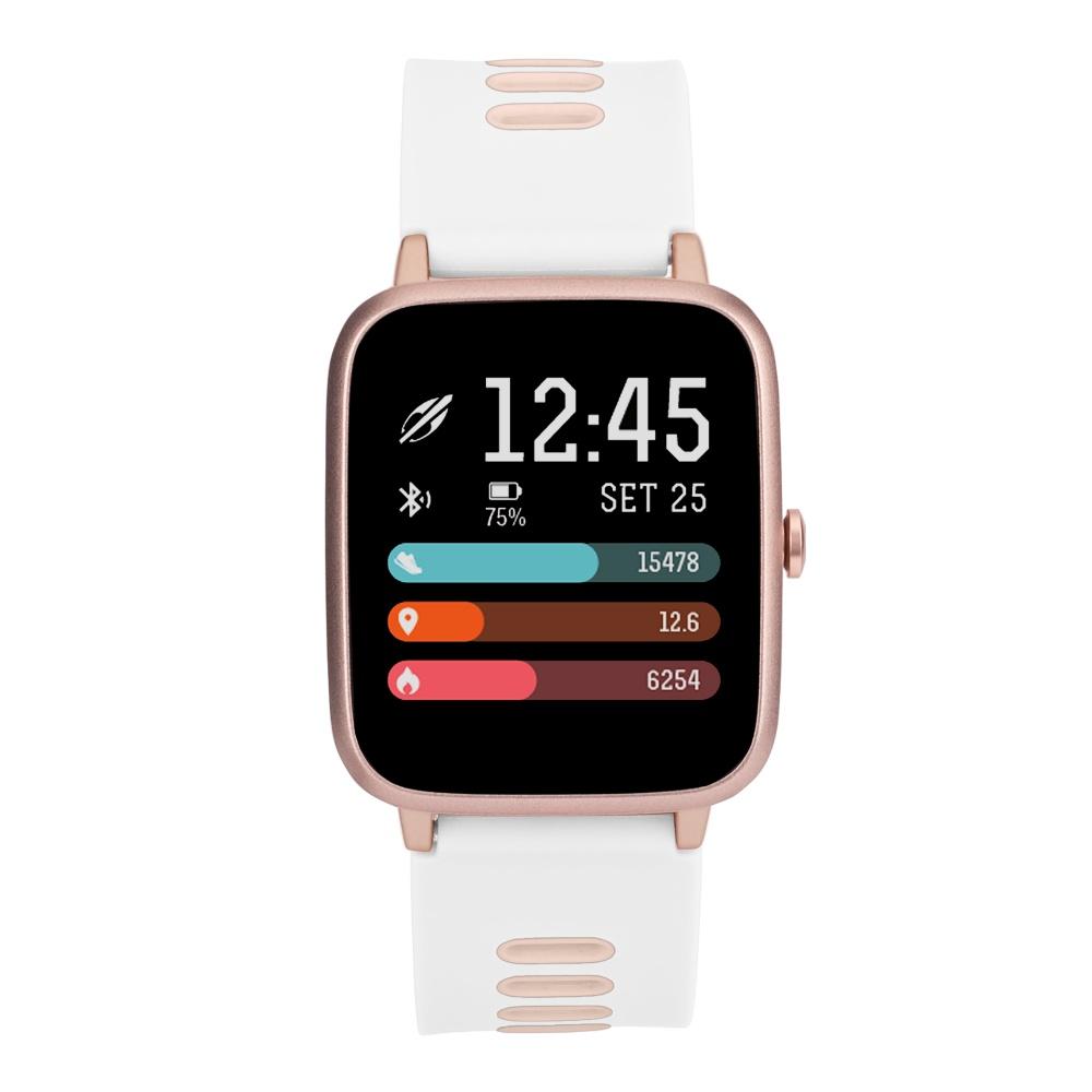 CARACTERÍSTICAS - Caixa rosa de polímero - Aro rosé de polímero - Pulseira de silicone branca e rosa - Tamanho de caixa 35mm - Tela de 1.3 e resolução de 240x240 px - Compatível com Android e iOS* PRINCIPAIS FUNCIONALIDADES - GPS Integrado - Resistência à água 5 ATM - Mais de 15 esportes - Bateria de longa duração* - Notificações de mensagem e ligação - Galeria com + de 60 telas - Monitoramento cardíaco - Contador de passos e distância - Controle de música - Reconhecimento automático de atividade* - GARANTIA NACIONAL DE 1 ANO