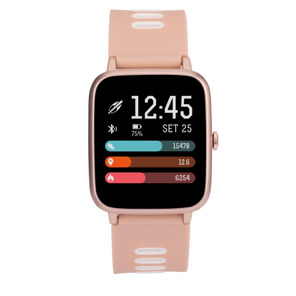 CARACTERÍSTICAS - Caixa rosa de polímero - Aro rosé de polímero - Pulseira de silicone rosa com branco - Tamanho de caixa 35mm - Tela de 1.3 e resolução de 240x240 px - Compatível com Android e iOS* PRINCIPAIS FUNCIONALIDADES - GPS Integrado - Resistência à água 5 ATM - Mais de 15 esportes - Bateria de longa duração* - Notificações de mensagem e ligação - Galeria com + de 60 telas - Monitoramento cardíaco - Contador de passos e distância - Controle de música - Reconhecimento automático de atividade* - GARANTIA NACIONAL DE 1 ANO