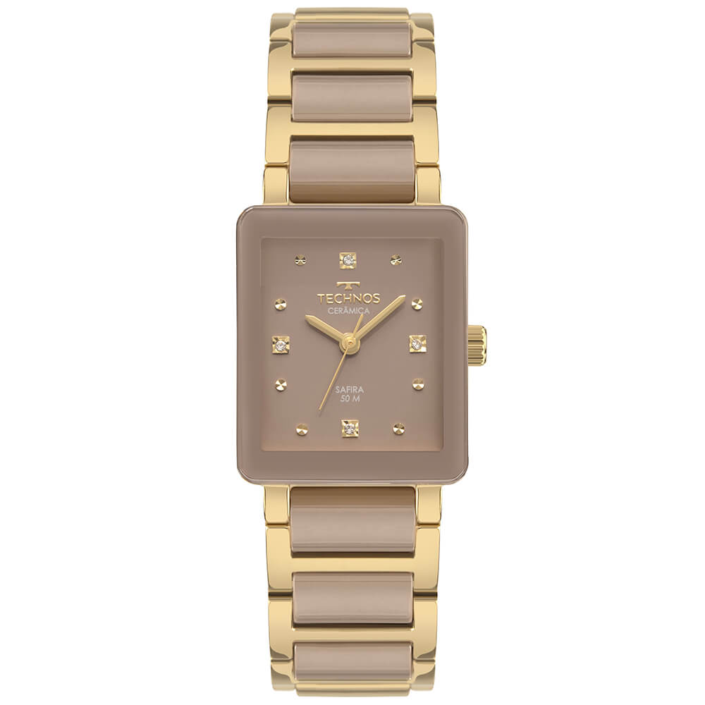 Relógio Ceramic apresenta um novo lançamento de design sofisticado, definido pela lente de safira com detalhe metalizado e aplicação de cerâmica. Seu mostrador quadrado e minimalista conta com assinatura de linha e aplicação de pedras, além de ser composto pela pulseira sólida de aço com cerâmica. Produto 100% em aço inoxidável, banhado em dourado, máquina quartz Japonesa Miyota e resistência à água de 50 metros.