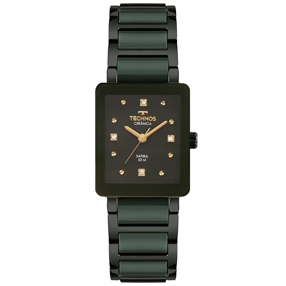 Relógio Ceramic apresenta um novo lançamento de design sofisticado, definido pela lente de safira com detalhe metalizado e aplicação de cerâmica. Seu mostrador quadrado e minimalista na cor verde conta com assinatura de linha e aplicação de pedras, além de ser composto pela pulseira sólida de aço com cerâmica. Produto 100% em aço inoxidável, banhado em verde, máquina quartz Japonesa Miyota e resistência à água de 50 metros