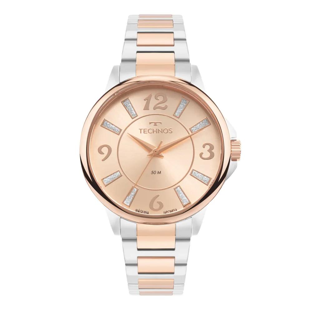 Relógio Technos Trend, lançamento com caixa best-seller. Ele apresenta um novo mostrador, com numeração arábica diferenciada nas posições de 3/6/9/12 e detalhe de brilho nos demais marcadores de hora. Produto 100% em aço inoxidável, com máquina quartz japonesa Miyota e resistência à água de 50 metros.