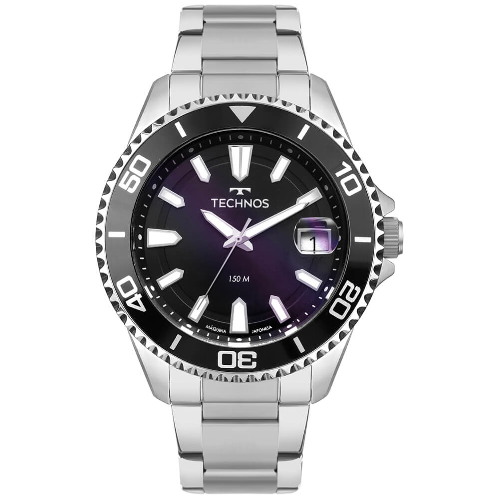 Relógio Acqua apresenta um novo design, com aro externo giratório unidirecional e mostrador na cor preto com detalhes em relevo. Ele conta com marcadores de hora luminescentes, lupa de calendário e marcadores tridimensionais. Produto 100% em aço inoxidável, banhado em prata, com máquina quartz japonesa Miyota e resistência à água de até 150 metros.