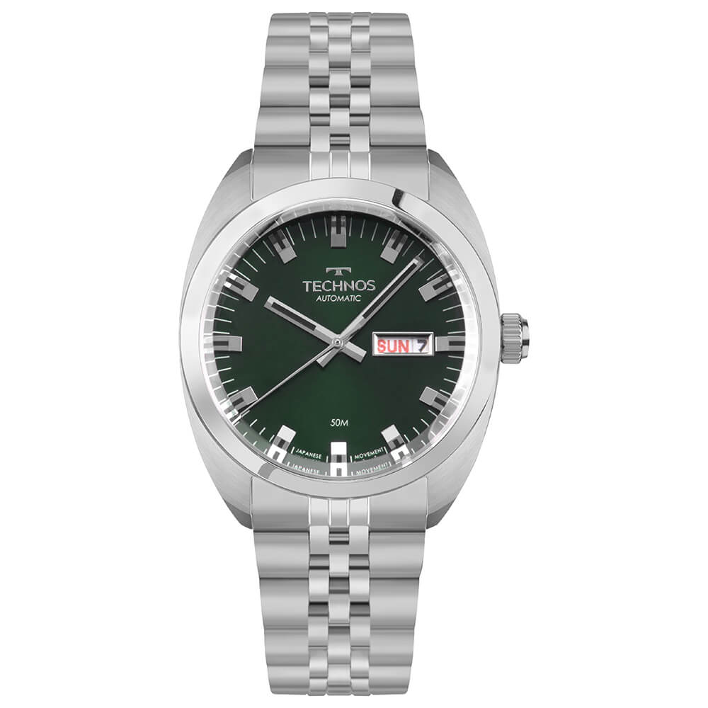 Relógio Automático surpreende com a nova coleção clássica, modelo inspirado nos primeiros lançamentos da década de 50. Apresenta máquina automática suíça, assinatura de linha no mostrador de cor preto, fundo rosqueado de vidro e marcadores tridimensionais, além de contar com funções como data e dia da semana no mostrador. Produto 100% em aço inoxidável, com maquinismo automático e resistência à água de 50 metros.