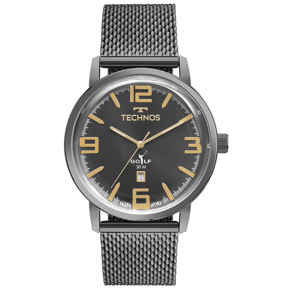 O Relógio Technos Masculino Golf Grafite - 2115UBL/1F traduz a elegância esportiva em um design moderno e imponente. Com caixa de 46mm, o modelo destaca-se pelo mostrador preto com marcadores e números dourados, criando um contraste refinado e de fácil leitura.