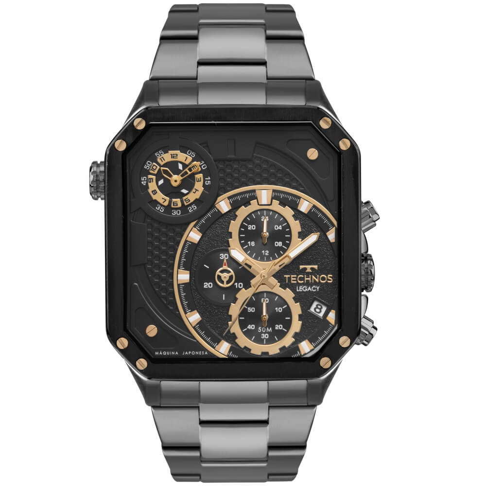 O Relógio Technos Legacy Masculino é um modelo imponente e sofisticado, desenvolvido para quem busca presença marcante e estilo diferenciado. Com caixa retangular de 45 mm, ele se destaca pelo design robusto, moderno e cheio de personalidade, ideal para ocasiões em que o visual precisa transmitir impacto e elegância.